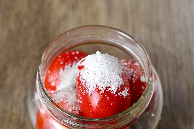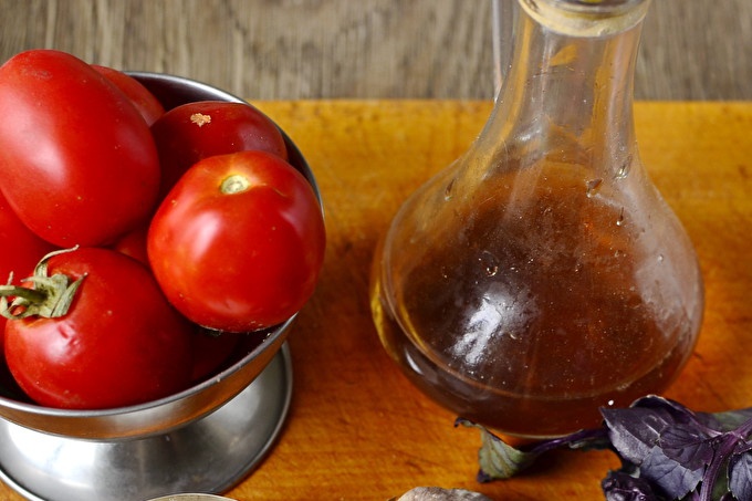 Вкусът на доматите излиза ароматен с пикантна осринка. Ябълковият оцет, използван в рецептата, ще даде на доматите деликатен, приятен вкус и тази съставка е естествена.