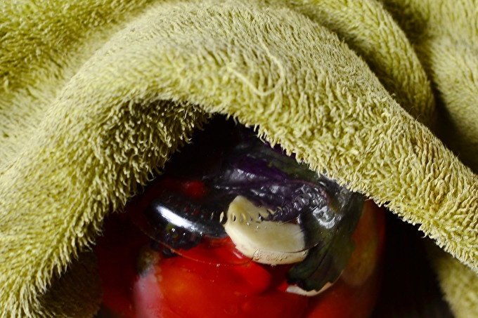 Завиваме консервирани домати в одеяло и така издържаме да изстинем напълно (около 20-24 часа).