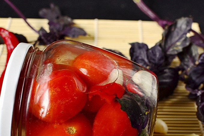 Как да готвя мариновани домати с босилек