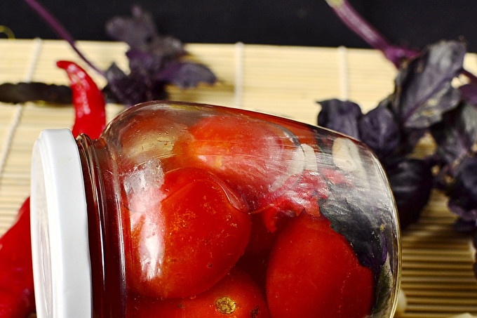Консервирани домати с босилек и сайдер