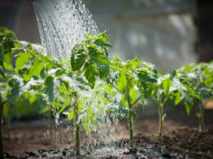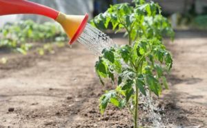 - Нередовно поливане. Доматите се поливат 1-2 пъти седмично, дълбоко овлажнява почвата. По време на плодовете се увеличават обемите за поливане, 2 седмици преди прибиране на реколтата - стоп. Когато посещавате вилата само през почивните дни, е необходимо да се организира капково напояване за доматите, в противен случай е невъзможно да се избегне напукване на плода.