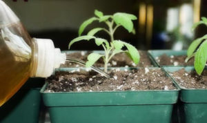 - Суперфосфатът (една чаена лъжичка) се разрежда в кофа с вода, настоявайки до пълно разтваряне на ден. Доматите се обработват по време на образуването на яйчниците.