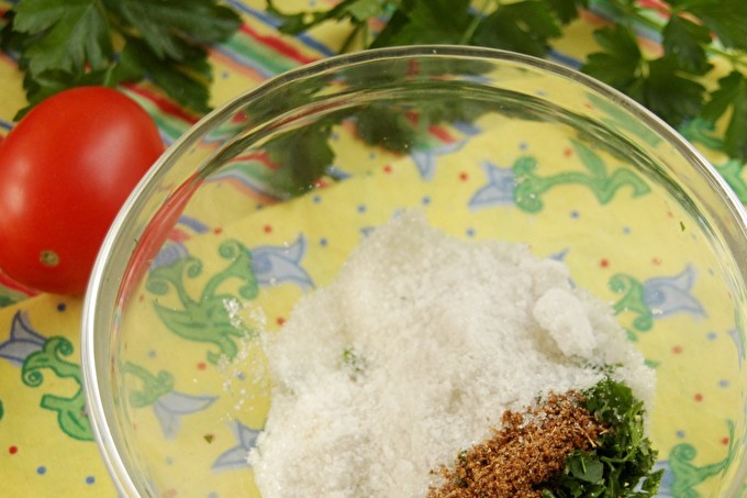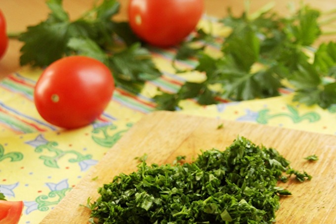 - 30 г зеленчуци (копър, магданоз, босилек, целина);