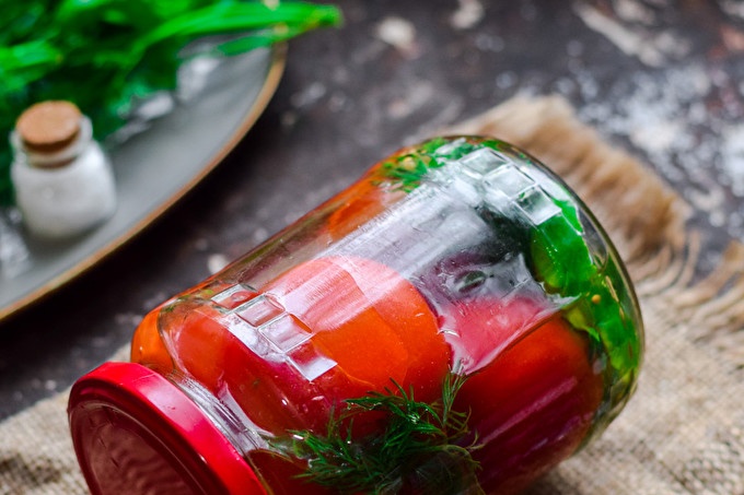 Подгответе днес мариновани домати за зимата в банки, които ще запълнят и украсят рафтовете на вашите кошчета. Доматите се оказват просто невероятни, те имат сладникав вкус, лек аромат на чесън и копър, всичко се оказва в умерени количества. Доматите за ецване са подходящи както за малки, така и за големи, като последните могат просто да бъдат нарязани.