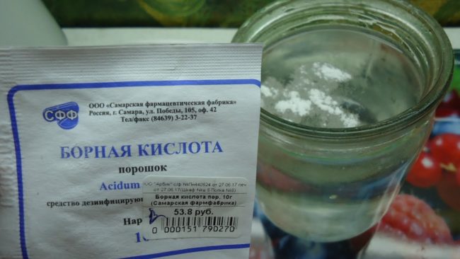 За приготвяне на капани на базата на борна киселина и мед, е необходимо да се приготви сладък сироп, като се заври 0.25 л вода, смесена с 2 супени лъжици. л. захар. След сироп оставя за 5 минути, добавете 1 чаена лъжичка. мед и 5 g H3БО3, Разбъркайте добре и отстранете от топлина.