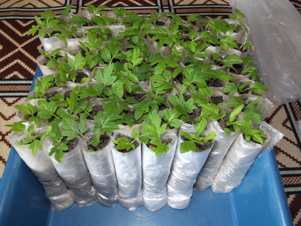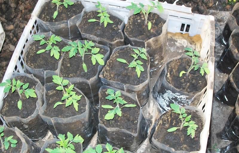 За засаждане на домати разсад са доста подходящи обикновени найлонови торбички. За закуска можете да използвате ролкови торбички. Размерът от 10 на 15 см ще бъде достатъчно.