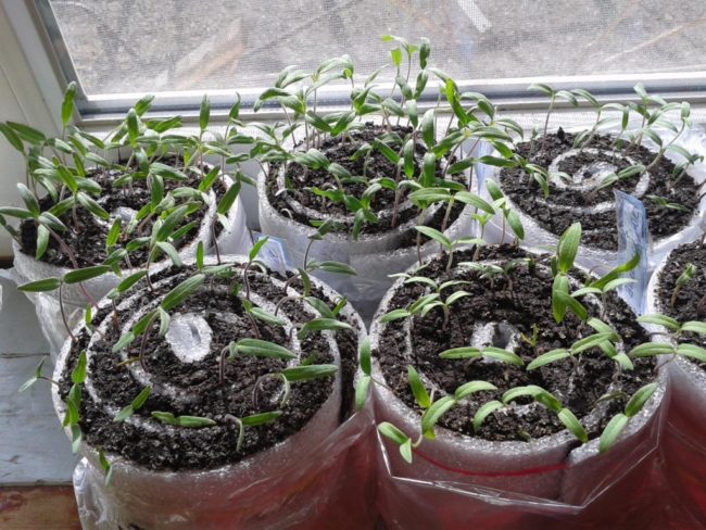 Всяка ролка се поставя в отделен контейнер, върху който се поставя стикер, като се посочва сортът, датата на засаждане, броят на семената. Етикетът е разположен така, че разсадът да не потъмнява. Контейнерът е непременно покрит с филм, а ако е контейнер, можете да затворите плътно капака или да го поставите в прозрачна чанта, така че да няма потъмняване. За влизане на кислород, няколко вентилационни отвора са направени под формата на изпъкнали пробиви / дупки, с помощта на ножици или нож.