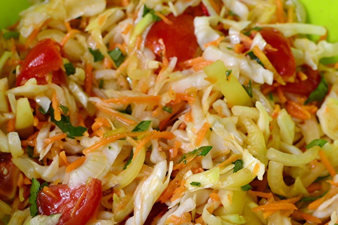 Готвене на салата от зеле и домати
