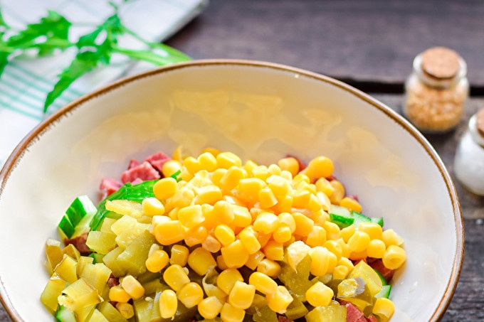 - консервирана царевица - 4 супени лъжици.