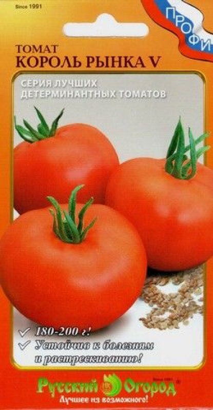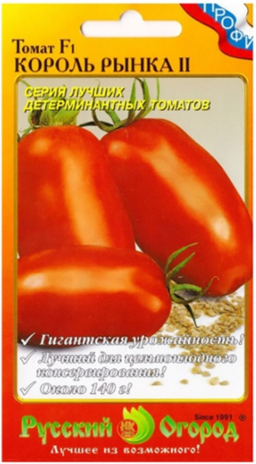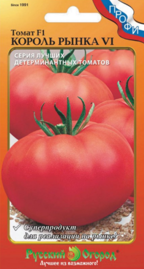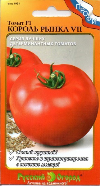 Серия от домати "King of the market" характеристика и описание на сорта се предлага на пазара на семена от компанията "Руска градина". Именно те отпечатваха торбите и номерираха „царе“ от 1 до 13, като ги определяха с хибриди F1.