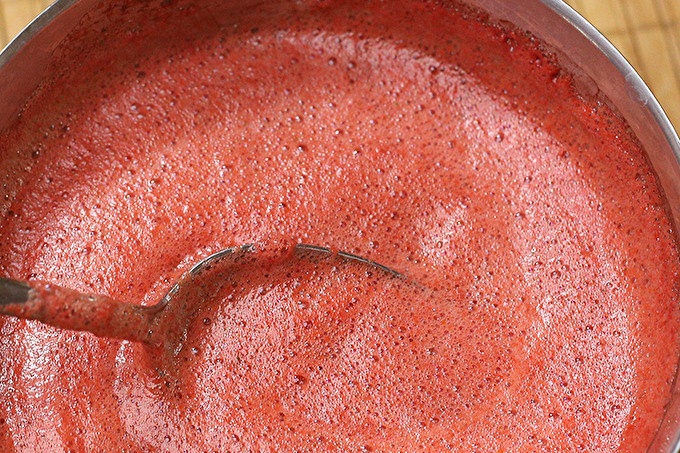 След варене буйни пяна ще се съберат на повърхността. В процеса на готвене, тя постепенно се спуска, но не може да чака, но го вземете с лъжица и продължете да готвите соса.