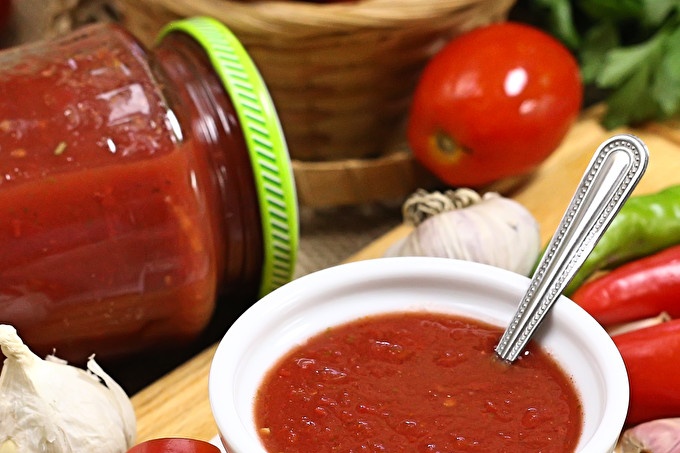 За да се подготвите за зимата ще ви трябват минимум съставки: домати, пресен босилек (заради липсата му може да се замени с изсушен), чесън и лют пипер. За да подобрите вкуса, можете да добавите фракция от смлян пипер или провансалски билки.