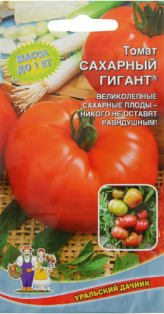 Подразбира се, че „захарният гигант” е домат с големи плодове, тъй като всички опаковчици посочват тегло от 500 и повече.