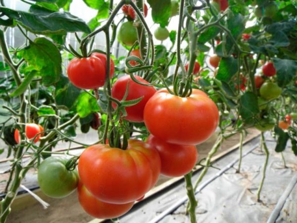 Висока стабилност на хибрида и външни фактори на околната среда.Каквито и да са климатичните условия, доматите са напълно плодотворни. Хибридът отлично пренася понижените температури и много високи, а също и резки разлики в температурата и влажността.