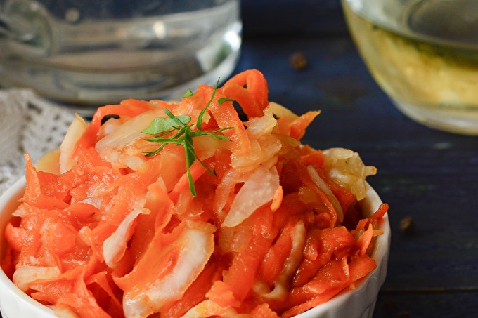 Ако в буркана има останало кисело зеле, можете да приготвите отлично зеленчуково ястие. Задушеното кисело зеле е идеална закуска, която може да се сервира с ястия от мазни меса, узбекски пилаф или с богата шурпа. Ако добавите пушени колбаси или филийки варени wieners, - ястието може да се сервира без картофено гарнитура или овесена каша.
