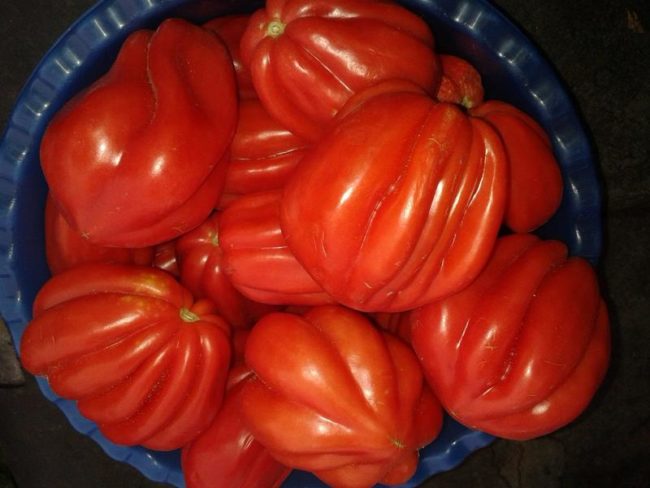 Събирането на първите плодове е възможно вече 80-90 дни (доматите в етап на техническа зрялост). Доматите по 500-600 грама всеки, с изразено ластик в стъблото, наситен червен цвят.