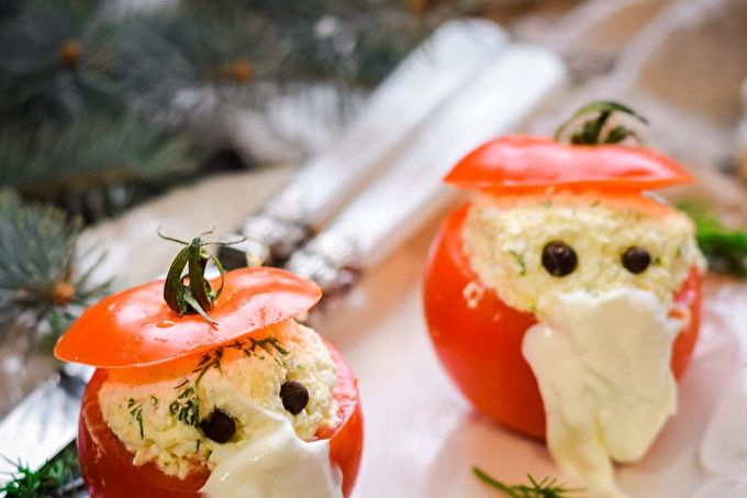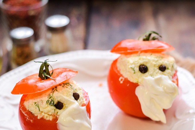 Как да се готви закуска "Дядо Коледа" на домати