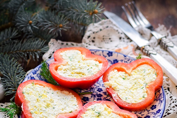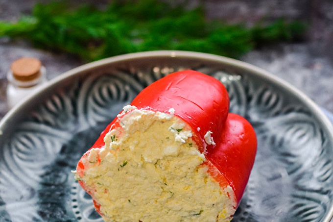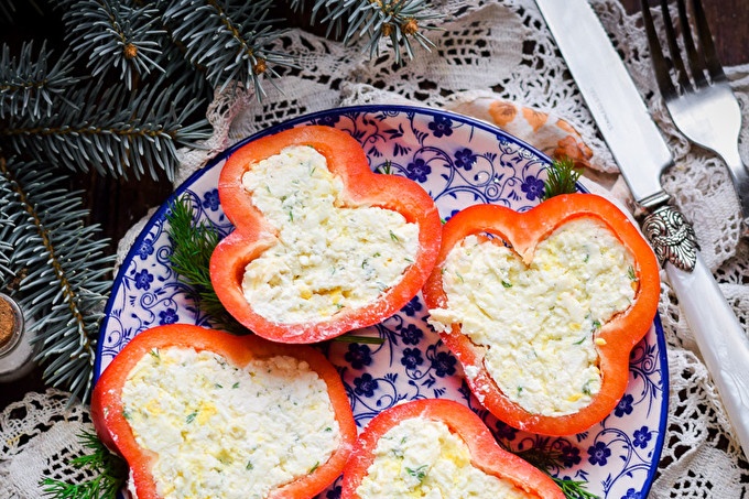 Предястие от пипер, пълнено със сирене, топено сирене и чесън